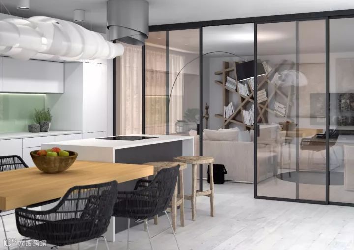 玻璃门的优点是显而易见的,它既可以帮助人们划分不同的功能区域,又不妨碍空间的通风、采光与视线,关时顺畅安静,开时灵巧轻盈,使空间更富弹性与张力。