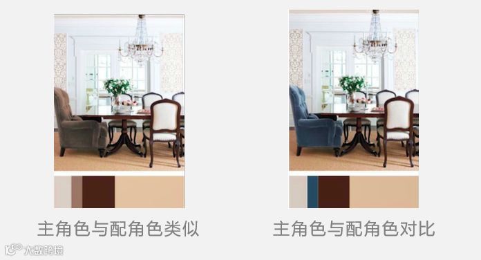 配角色最大的作用是衬托主角色,所以通常会与主角色保持一定的色彩差异,这样不仅能突出主角色,还可以丰富空间的视觉效果。