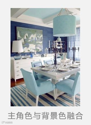 这是一个餐厅空间,餐桌的颜色为主角色;而背景色是指墙面和斗柜的颜色。小编个人认为:如果将白色的斗柜换成一个墙面展示柜的话,会更好地融合背景色与主角色。