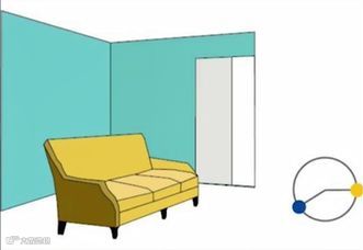 c.因为背景颜色是由墙面、地面、天花板和地毯共同组成的,所以往往使用多种色相的色彩组合。最少需要两种色彩,有时会出现三种颜色。