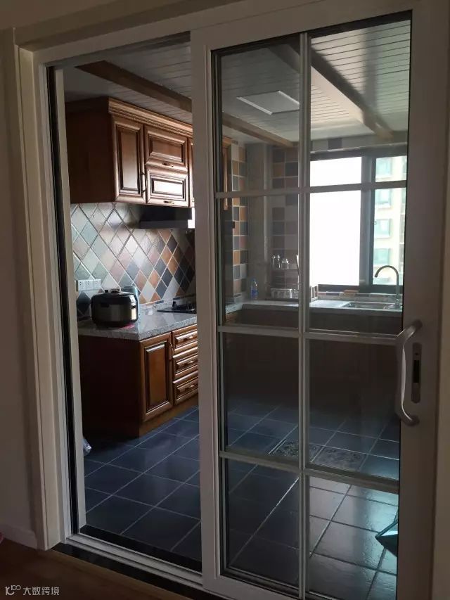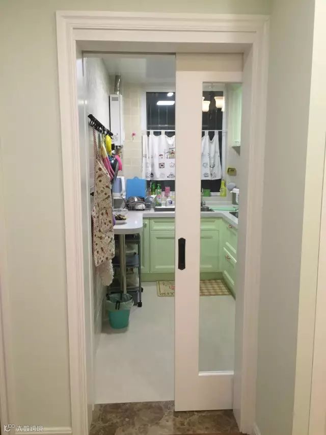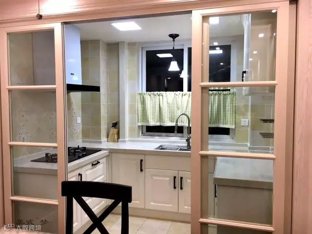 单是厨房门黑色的,这样的效果就没那么好了;