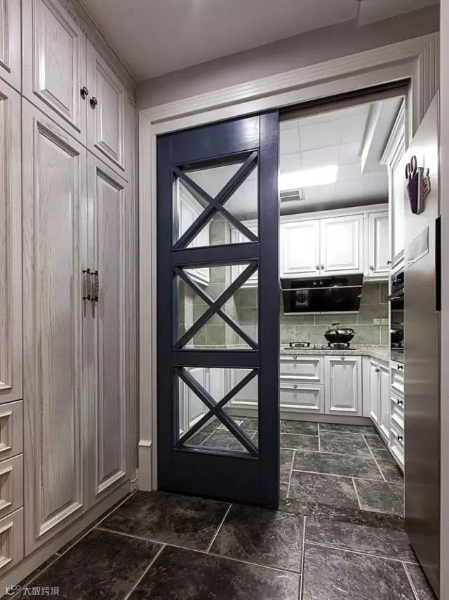 与餐布外面的氛围颜色一致的厨房门,在外面看也是很和谐美观;