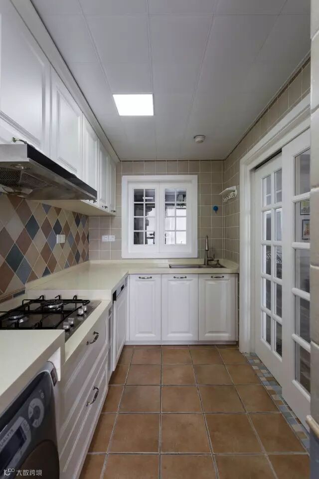 使用马赛克砖作为厨房的门槛石,让空间的分割更加明显,当然搭配厨房墙面的马赛克大砖,效果也是相当的不错;