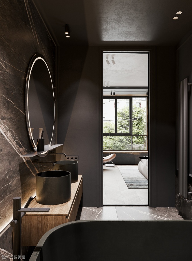 中色地板+深色门的搭配方式也很常见,中色地板属于比较保险的万能色,基本跟任何颜色都能配得上。