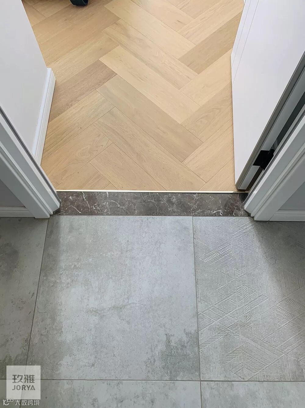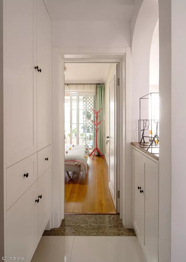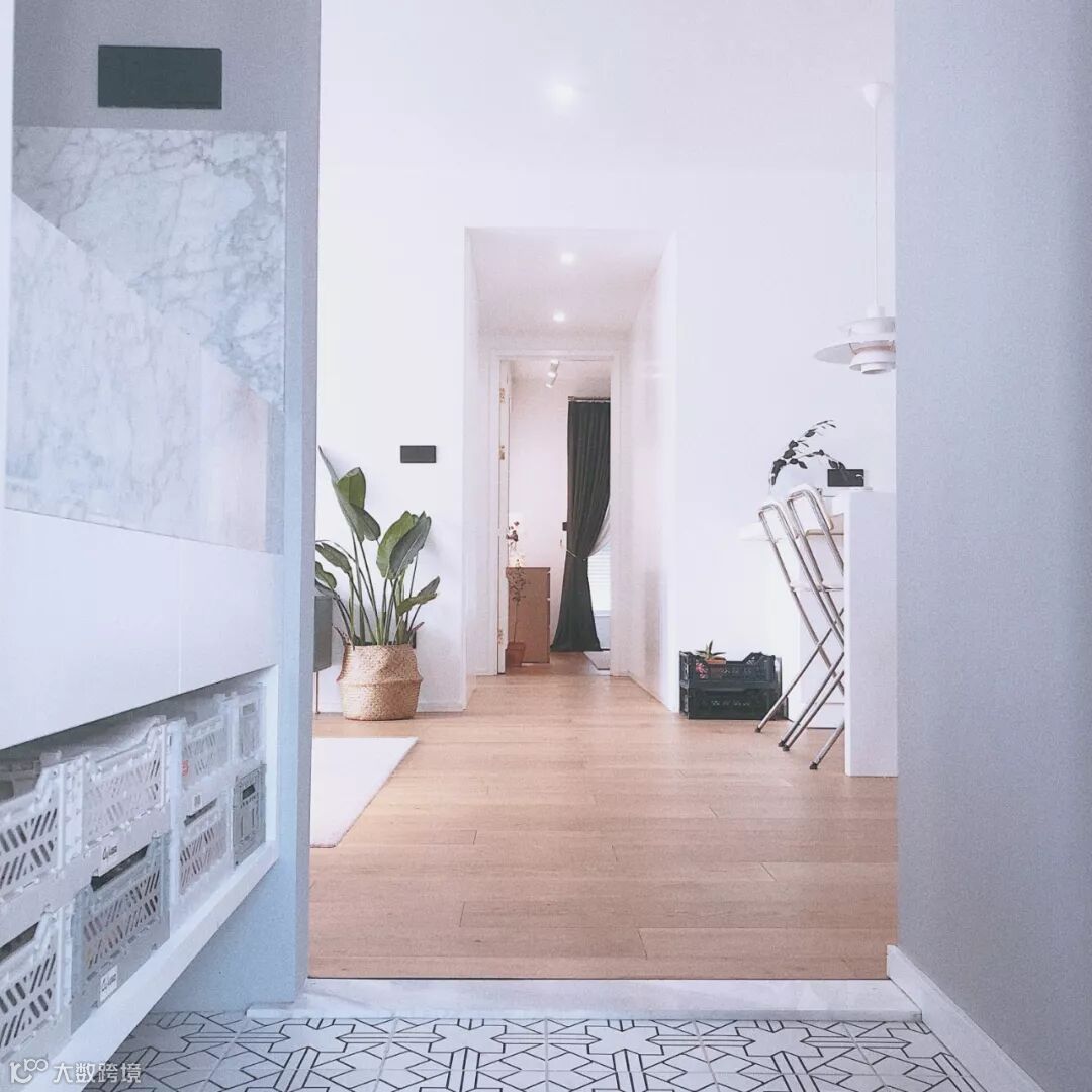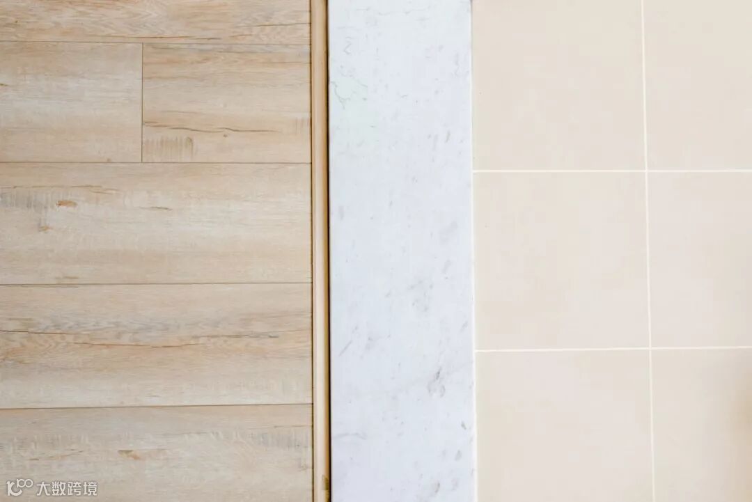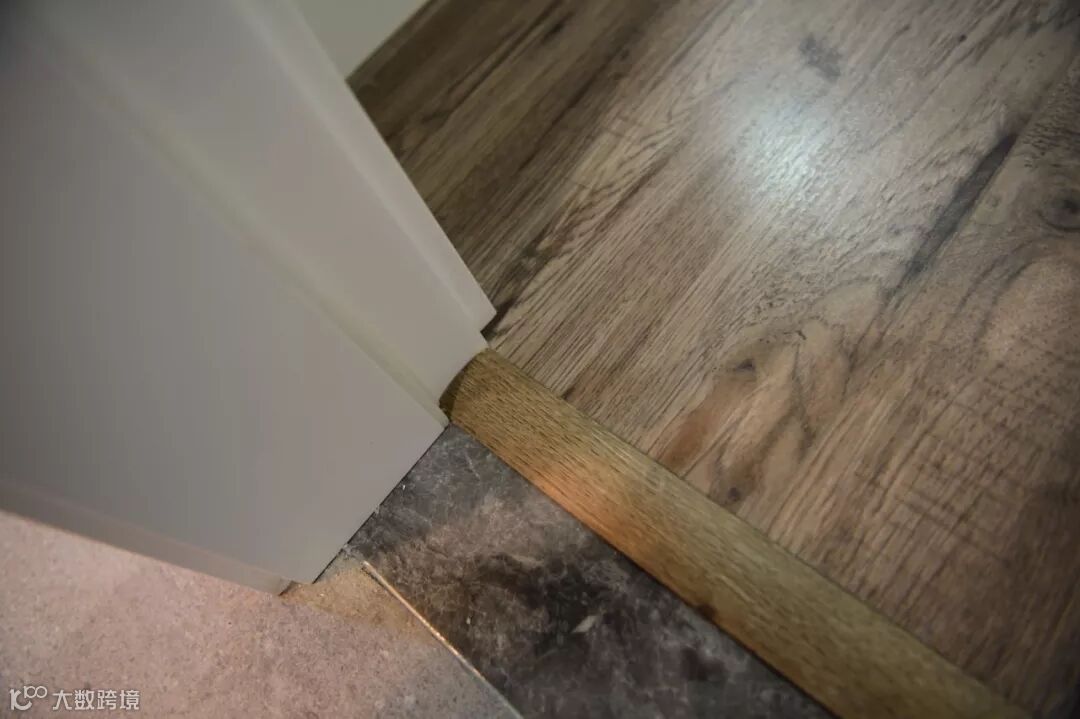 客厅贴地砖+房间铺木地板,这种组合是一种非常实用舒适的地面装修搭配方案,不过从地砖到木地板的过度,常规的填缝收口方式可能都不太合适,毕竟木质与地砖是两种属性完全不同的材质,这个情况就建议用压边条来收口,这样的收口方式将会更加简洁美观了!