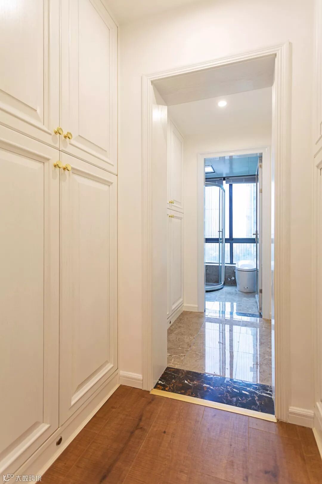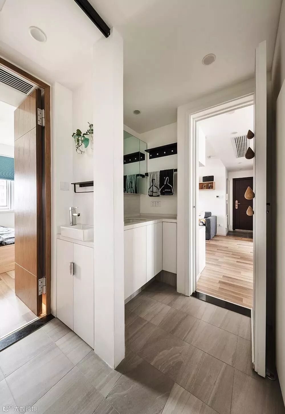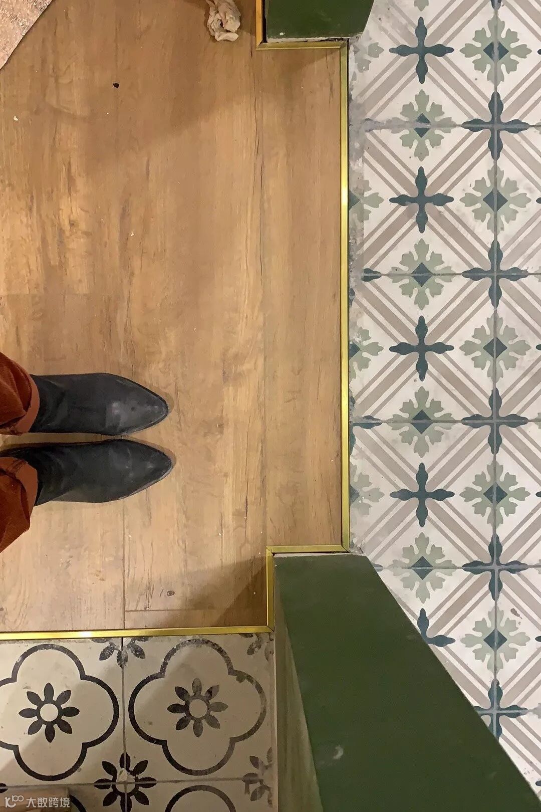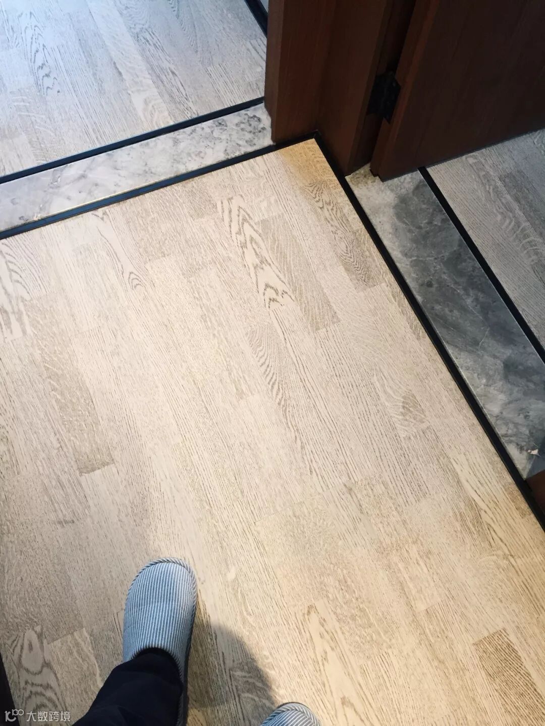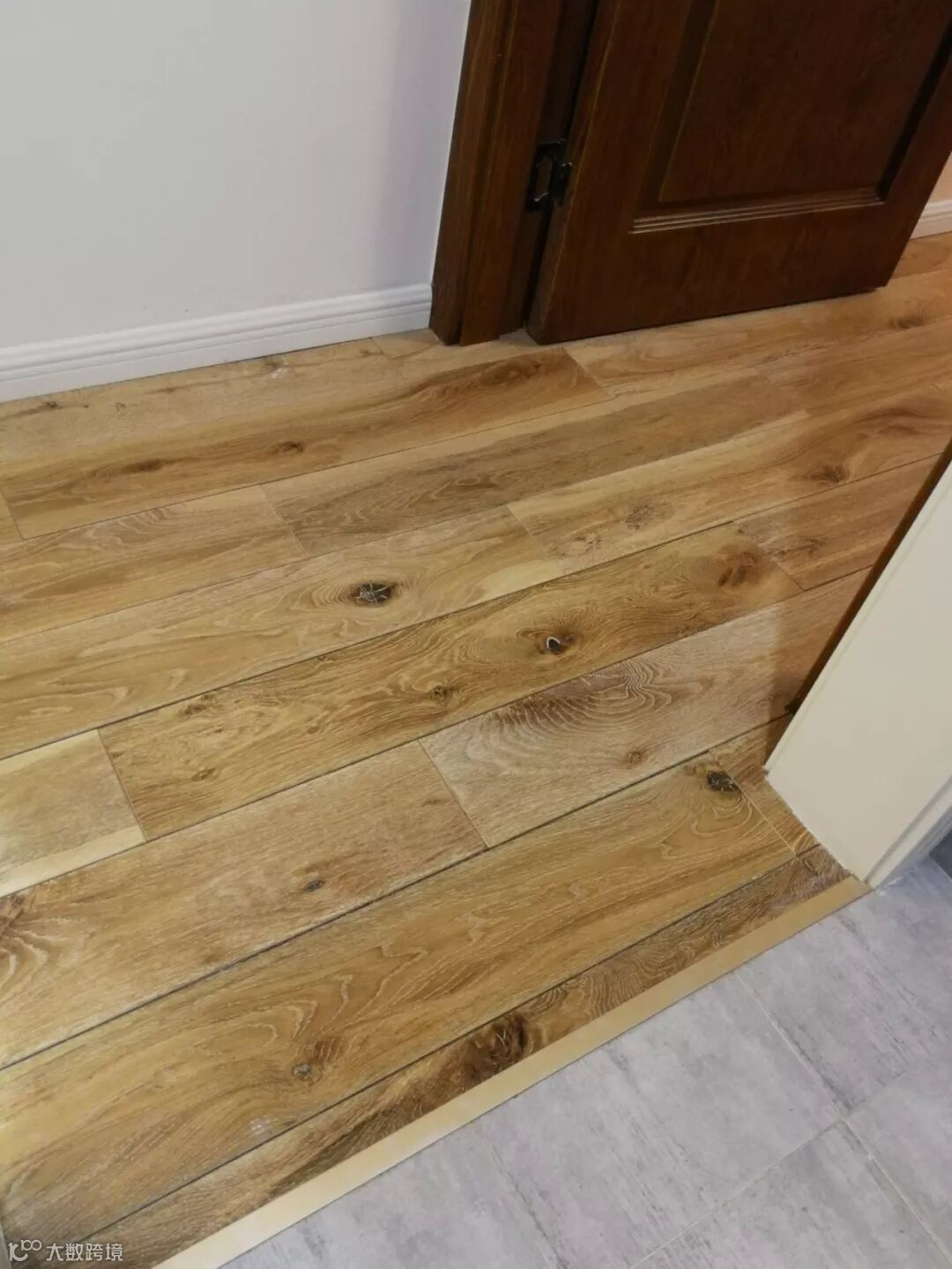 客厅贴地砖+房间铺木地板,这种组合是一种非常实用舒适的地面装修搭配方案,不过从地砖到木地板的过度,常规的填缝收口方式可能都不太合适,毕竟木质与地砖是两种属性完全不同的材质,这个情况就建议用压边条来收口,这样的收口方式将会更加简洁美观了!