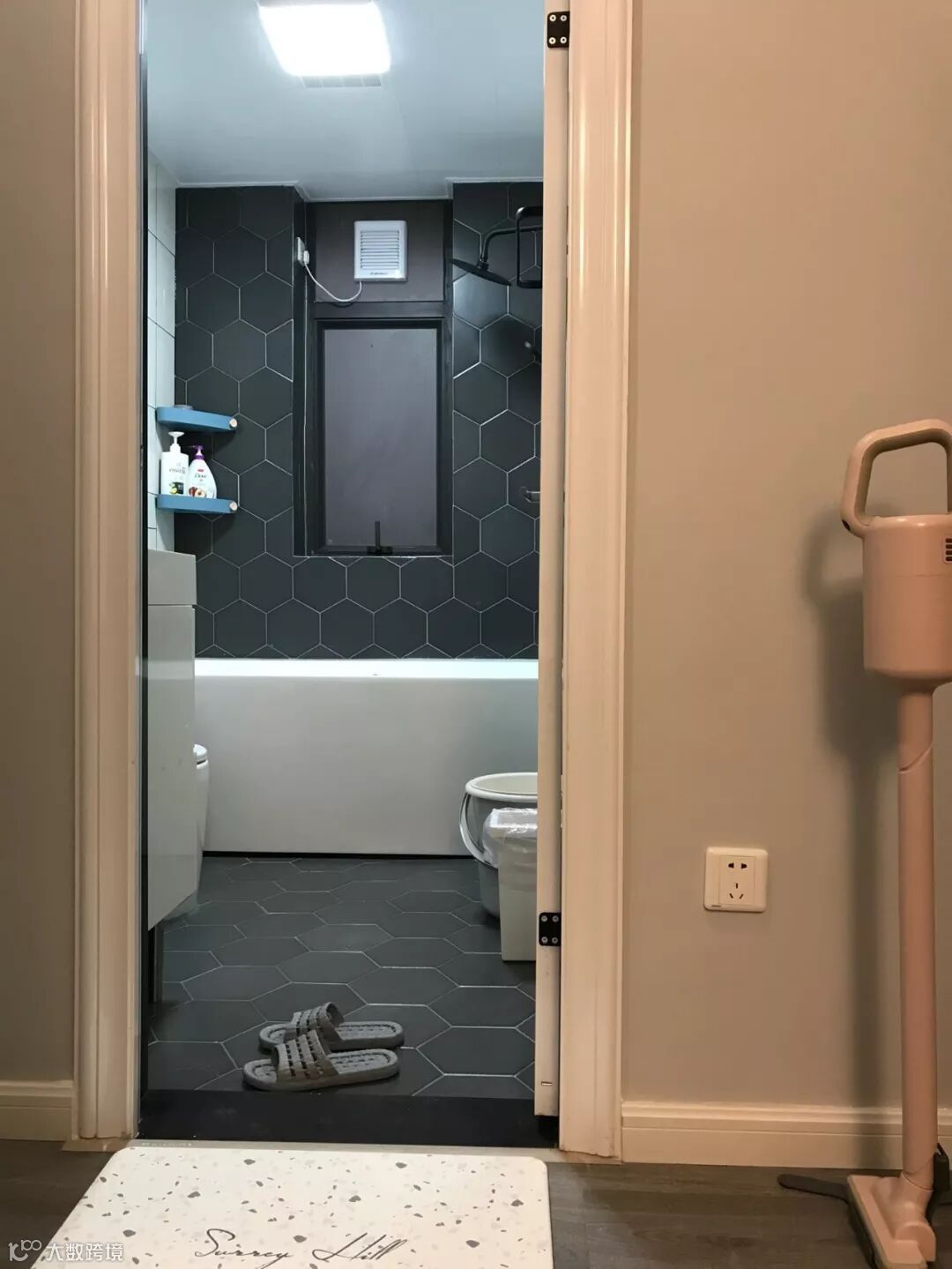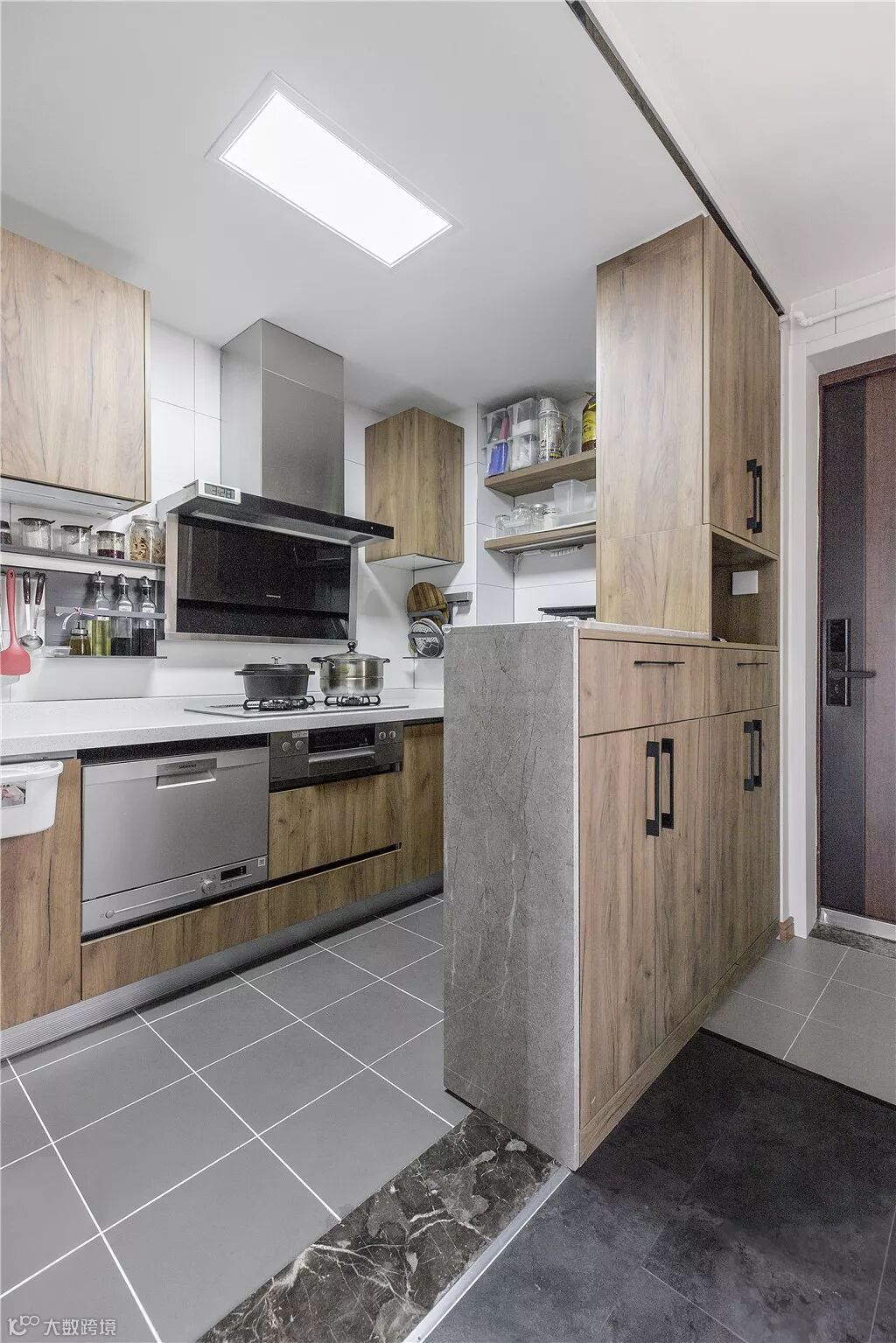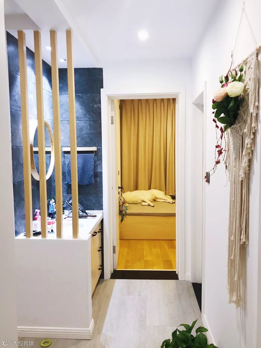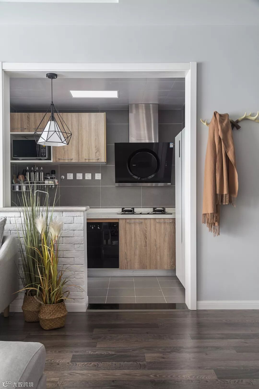 客厅贴地砖+房间铺木地板,这种组合是一种非常实用舒适的地面装修搭配方案,不过从地砖到木地板的过度,常规的填缝收口方式可能都不太合适,毕竟木质与地砖是两种属性完全不同的材质,这个情况就建议用压边条来收口,这样的收口方式将会更加简洁美观了!