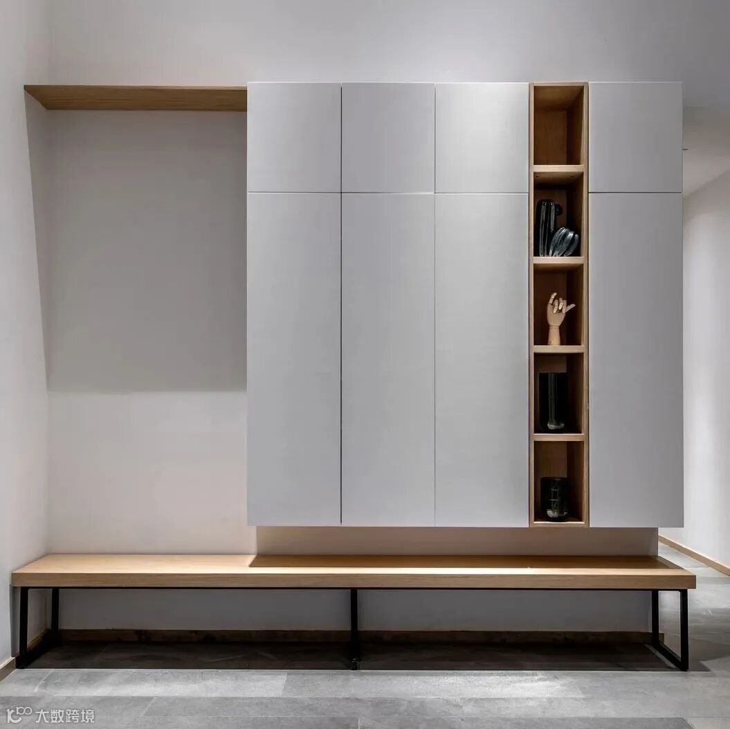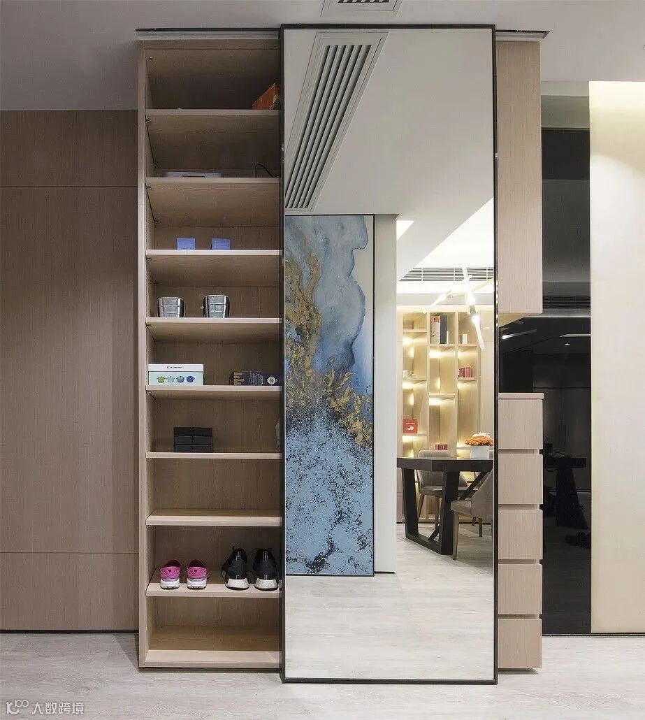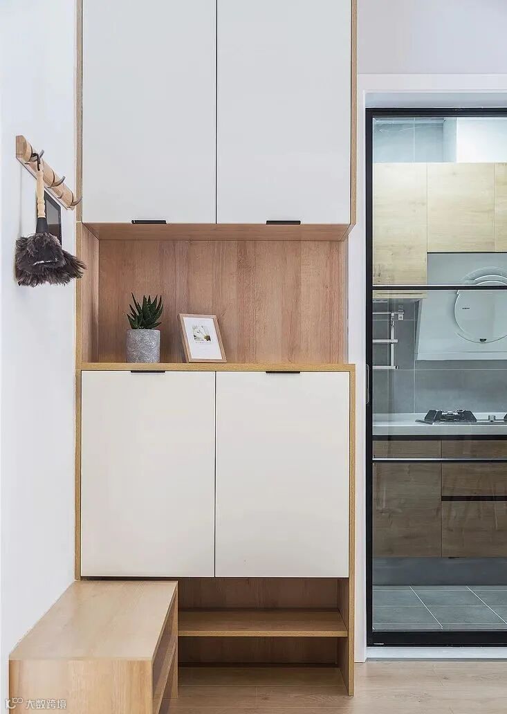 所以建议大家可以采用让鞋子从下方透气的悬空设计,鞋柜下方的悬空设计,可置放进屋时脱下的鞋子,能先让鞋子透透气,等味道散去再放进鞋柜,同时也解决鞋子堆在鞋柜外的杂乱。