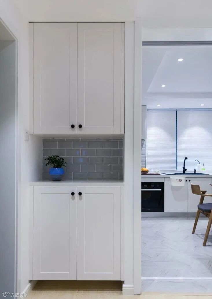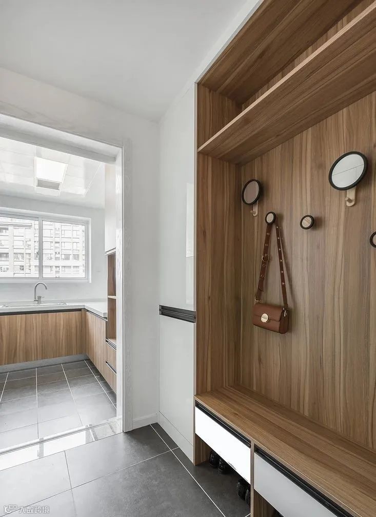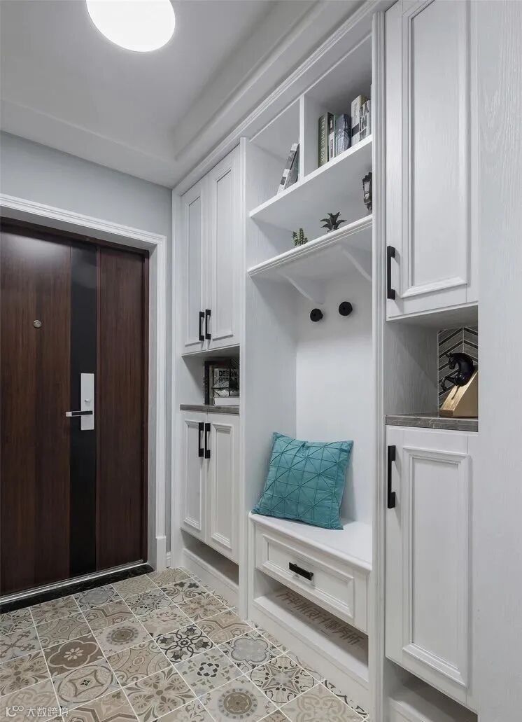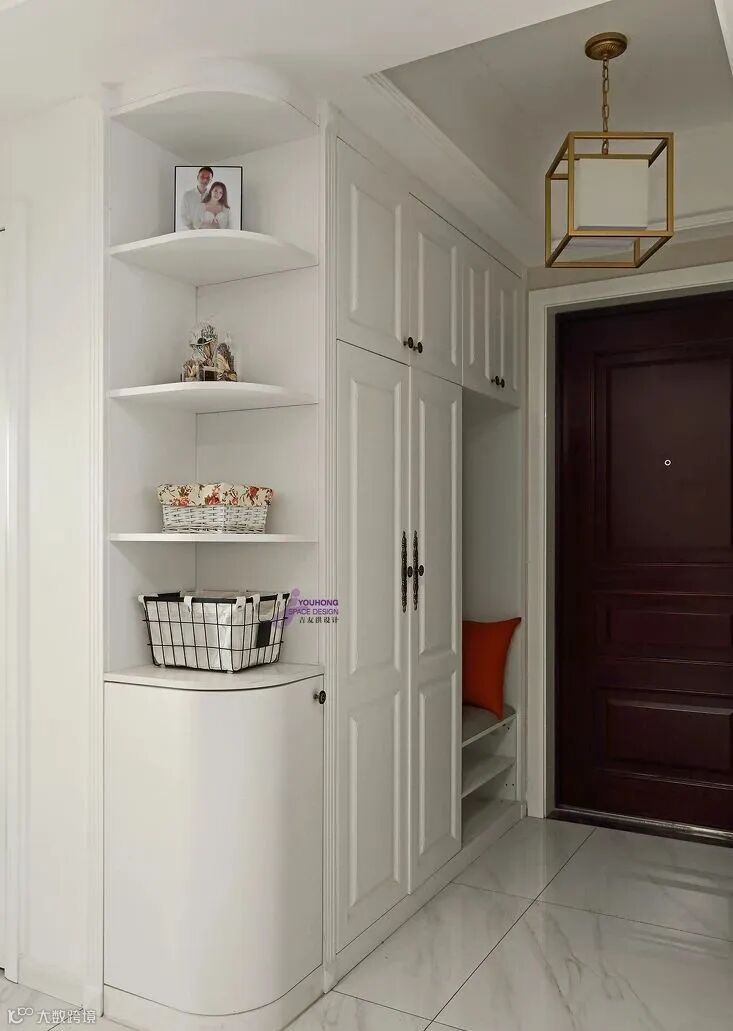 4.在设计玄关柜的时候,可以在柜子中间留空,方便回家时放包包和钥匙这些零散的小东西。