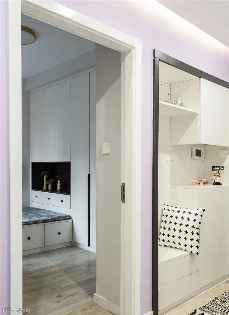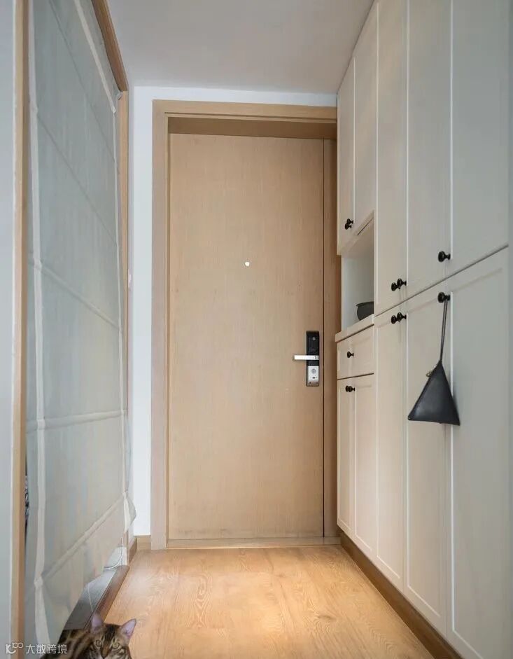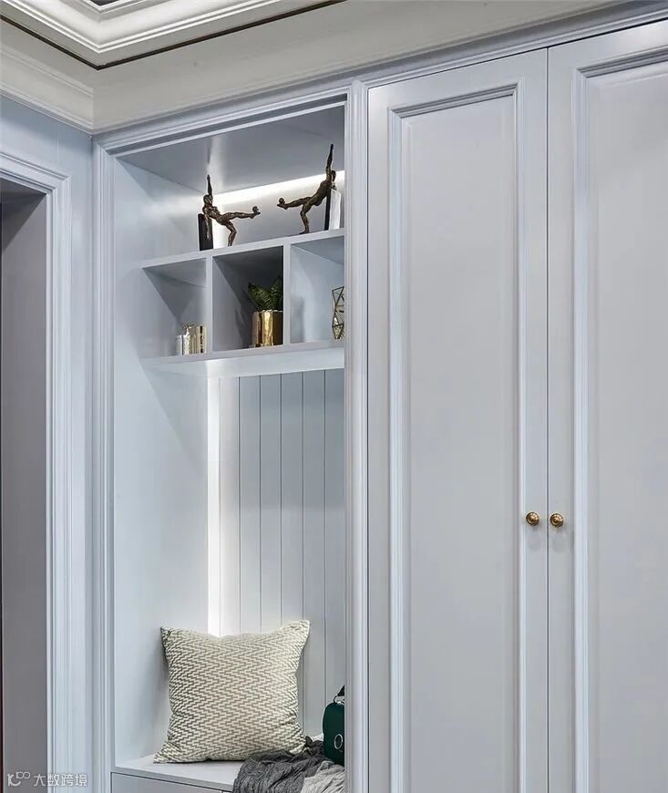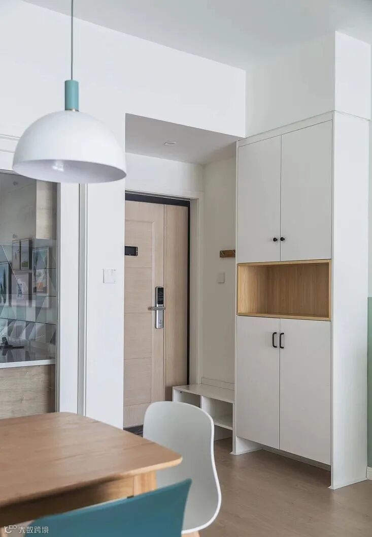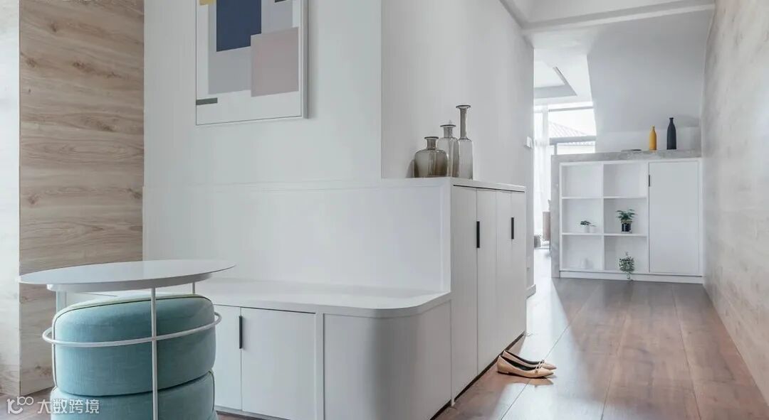 3.除了鞋柜底部留出空间,最好还能设计一个矮凳。可以用低矮的鞋柜代替,也可以直接放个凳子在这里,换鞋的时候就方便多了。