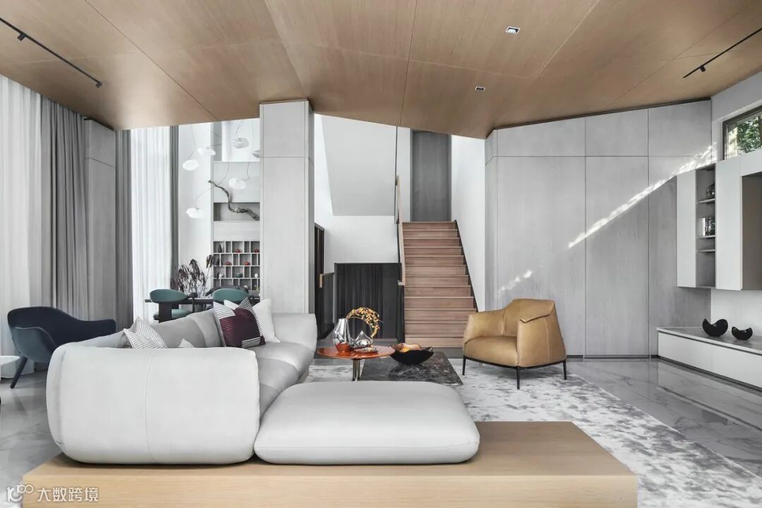 ▷ 由于染色木皮是现代产品,现代产品靠颜色搭配(深色点缀),导入灯光,进而配五金和智能元器件,才能完美。