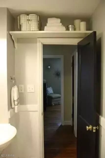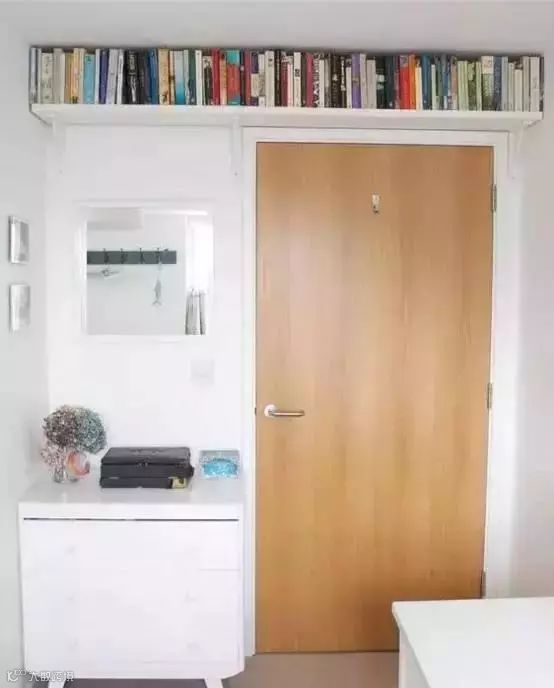 门体周围的空间也不容错过,利用好了,能省出半间房!在门顶安上一大块木板,就可以打造悬空式的置物架,能放不少杂物。