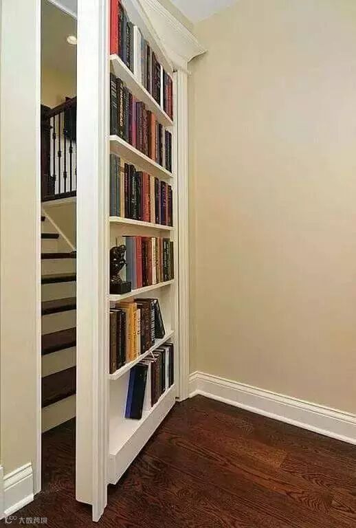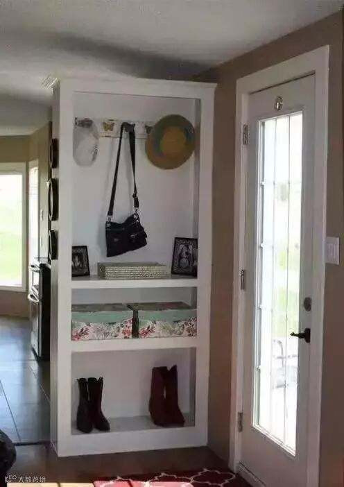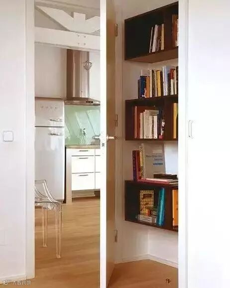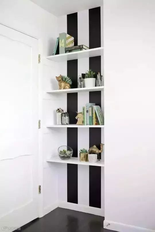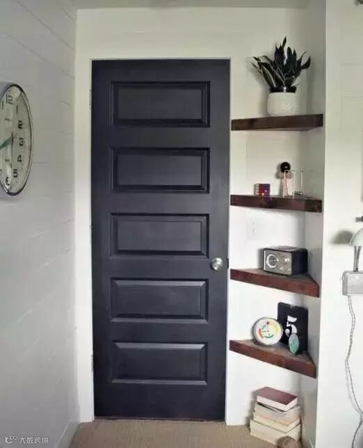 有些门与墙壁之间空间较小,完全可以打造一个壁龛,嵌入到墙里,仅仅需要几块隔板,不仅不占地方,还能收纳许多杂物呢!注意,打造时不要误选了承重墙!
