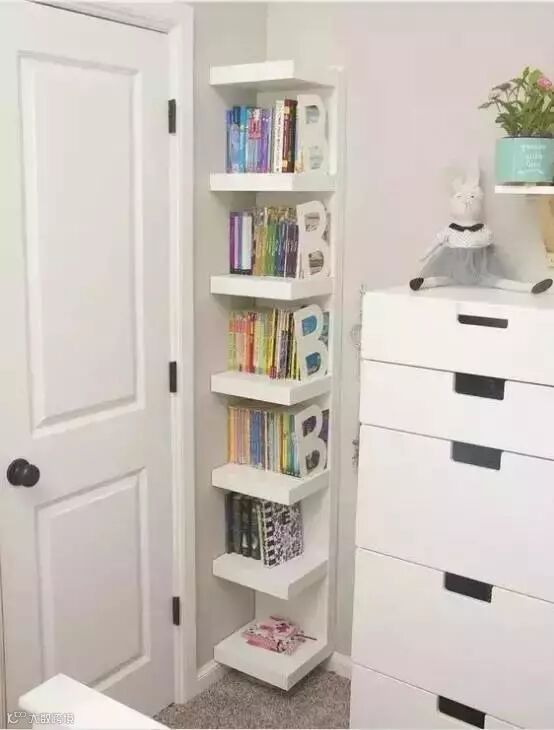 孩子的卧室中,在墙角固定几排木架,就是一个简易书架了。