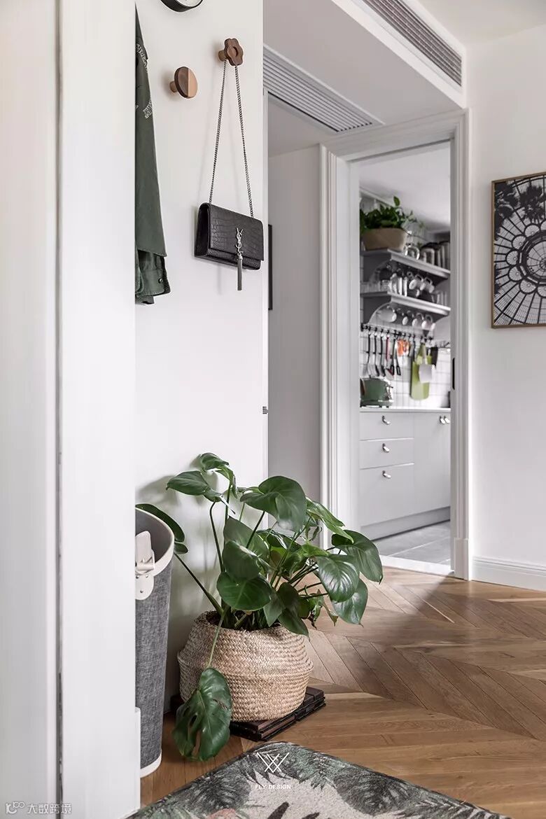 如果玄关有留空的墙面,那么挂钩直接装到空墙上面,让空间的里面得到最大化的利用,而且挂钩的设计一般比较薄,对空间的通道也不会有什么影响。
