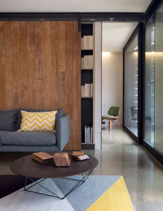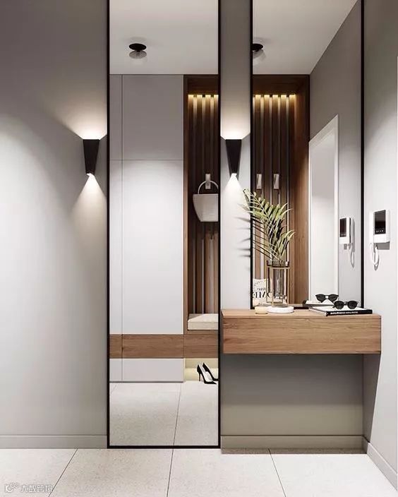 这是最普遍也是最简单的方式了,把门的颜色材质和墙面一样,基本上就可以了。再配点线条之类,让门与墙融为一体。