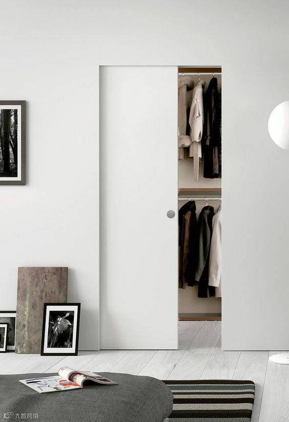 门可以设计的和柜子融为一体,这样基本上达到了很好的隐藏效果。一般在衣帽柜和储物柜这样的地方,最适合做隐形门了~
