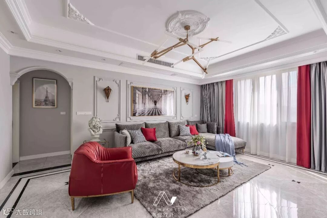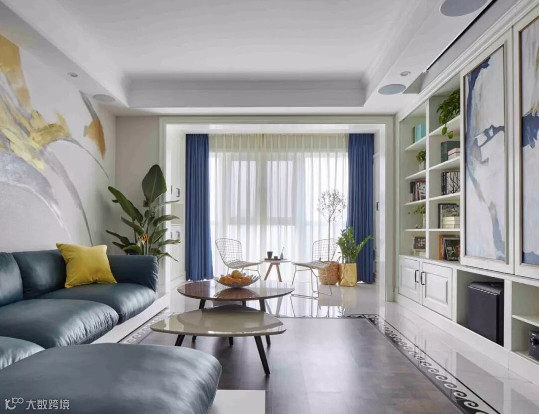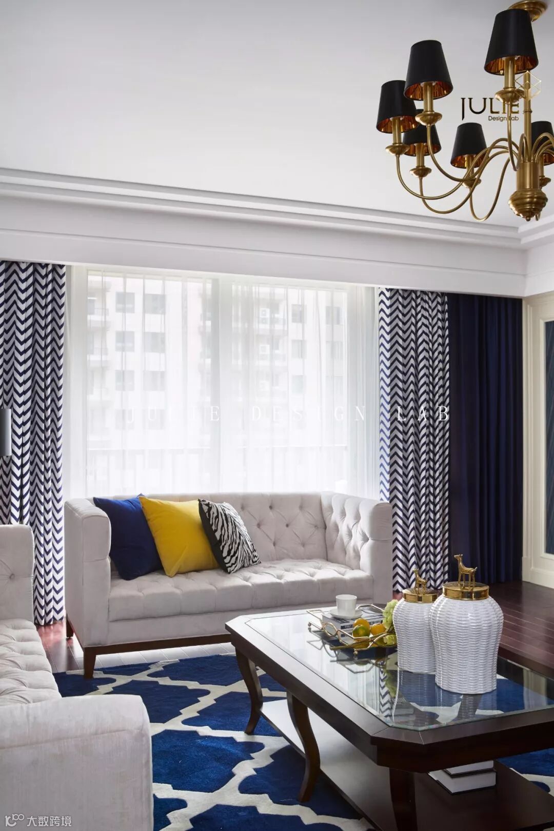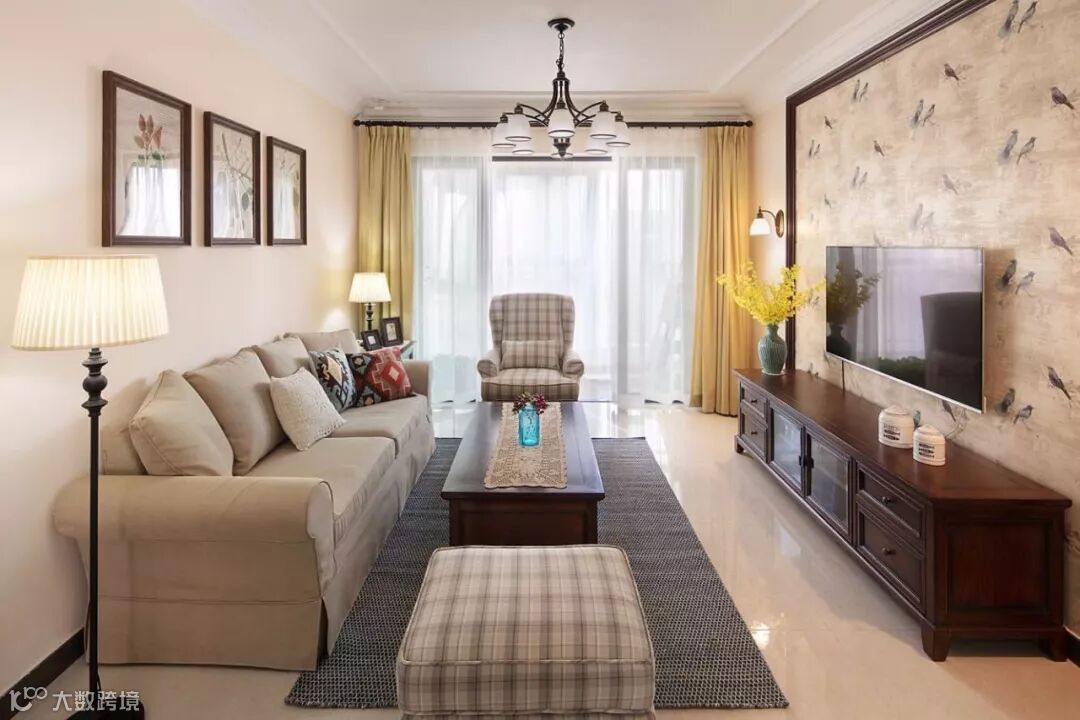 现代美式风格也是一种比较流行的设计,通过现代优雅的空间,搭配上美式元素质感的家居软装,可以使得空间温情而档次。在现代美式的客厅窗帘搭配中,多数都是以鲜艳活泼的色彩搭配为主,也有选择带花纹的窗帘布置,总体搭配比较华丽精致。