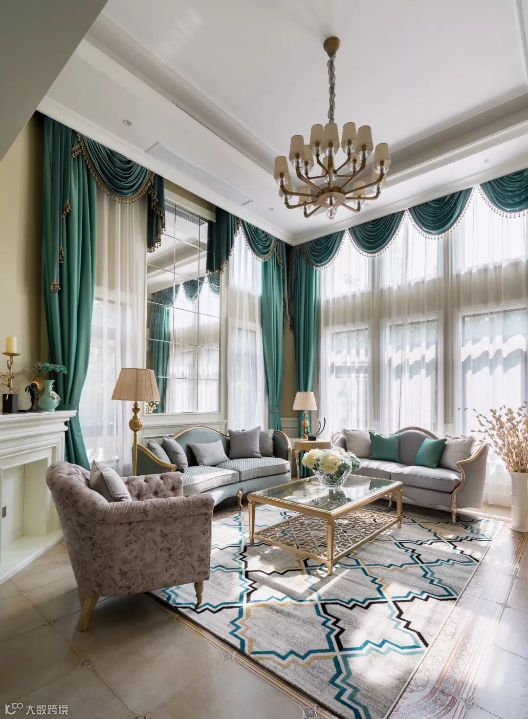 欧式风格一般在一些大宅别墅中较为常见,这些客厅的空间面积通常都比较大,窗帘的搭配一般也会比较华丽优雅,深颜色、花纹图案等,都可以运用上去,搭配出来的效果也是较为繁杂独特,让空间更加多元化。