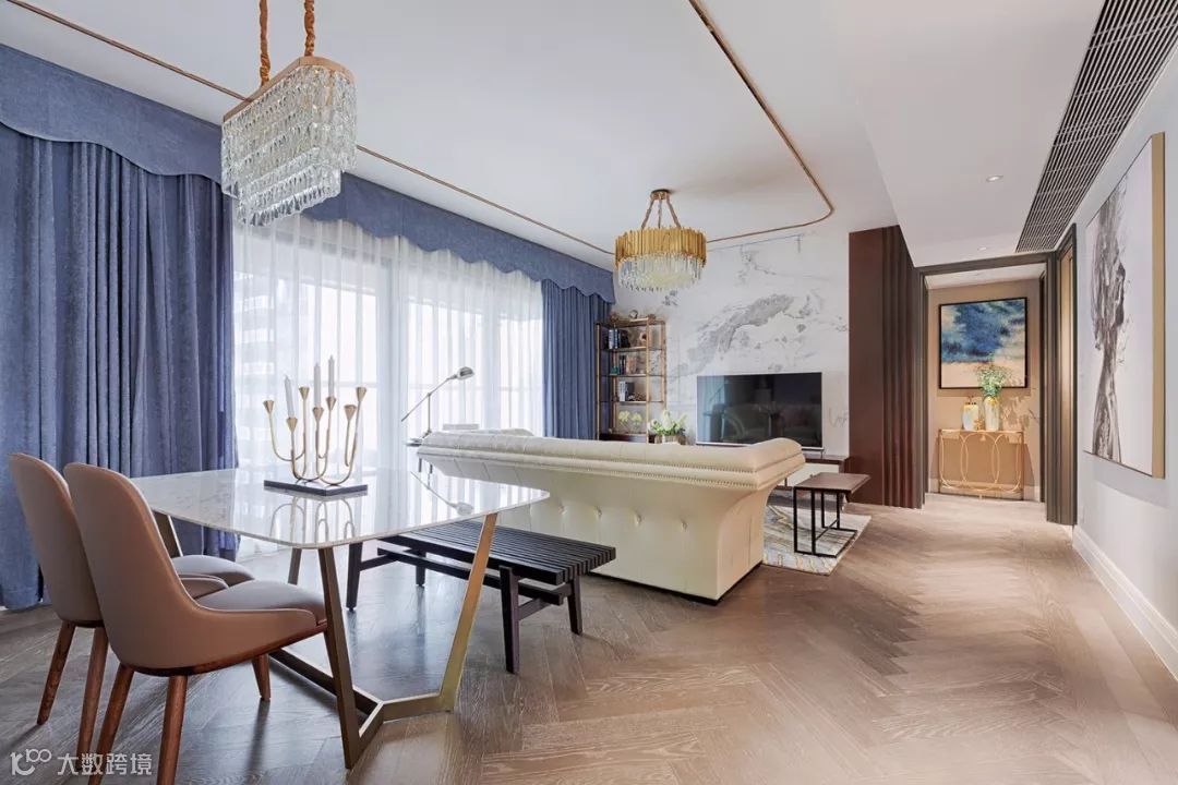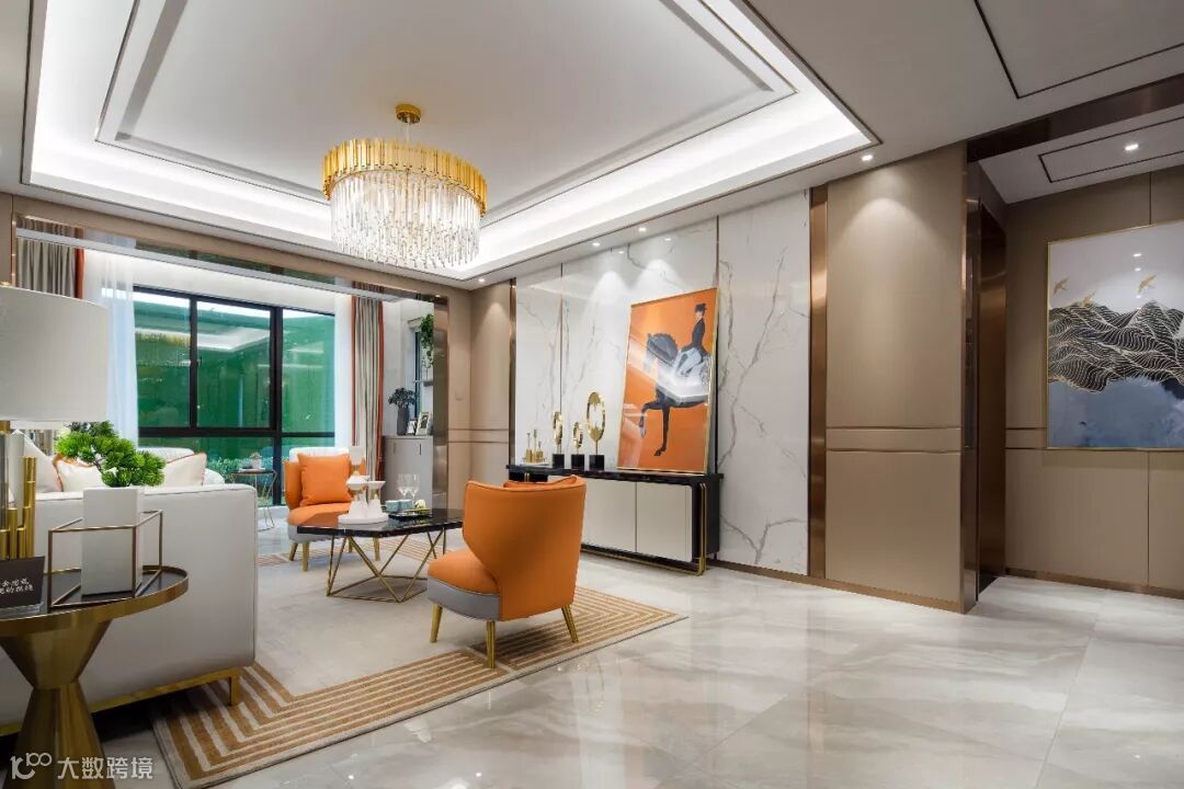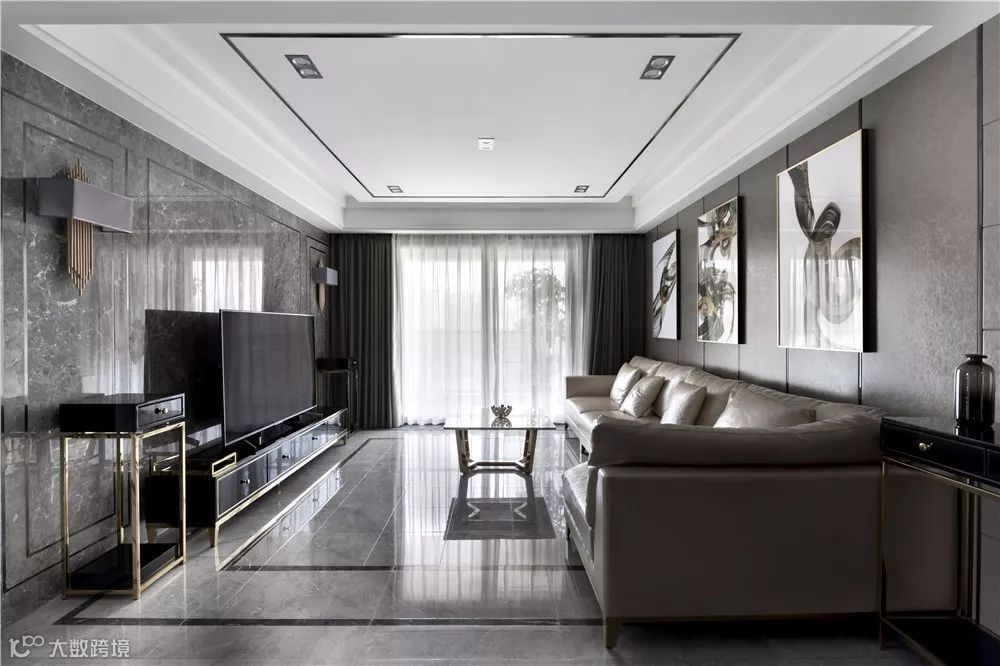 现代风格是当下主流的装修风格,当把轻奢风的设计元素融入到现代大方的客厅里,带来的就是一种优雅端庄而又舒适的华丽,体现出主人不凡脱俗的儒雅气质。