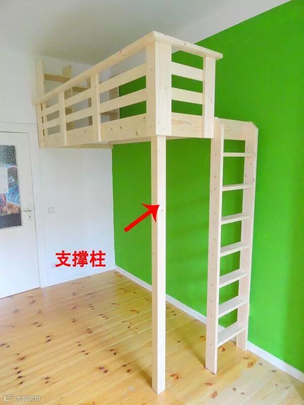 一般抬高床铺下,多加几根柱子,一方面起到支撑作用,一方也起到承重分散床板压力。而和不到2-3公分厚的小柱子,看着一折就能断,不如加宽加长,换成置物架更安全!