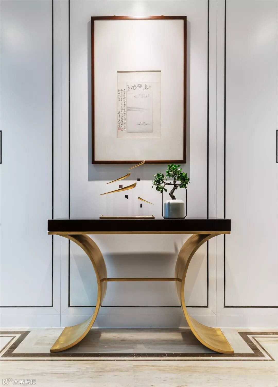 像这种带有实用功能的玄关桌,上方用于物品展示、下方用于满足收纳,也可以让你的家看起来干净简约,现代气息十足。
