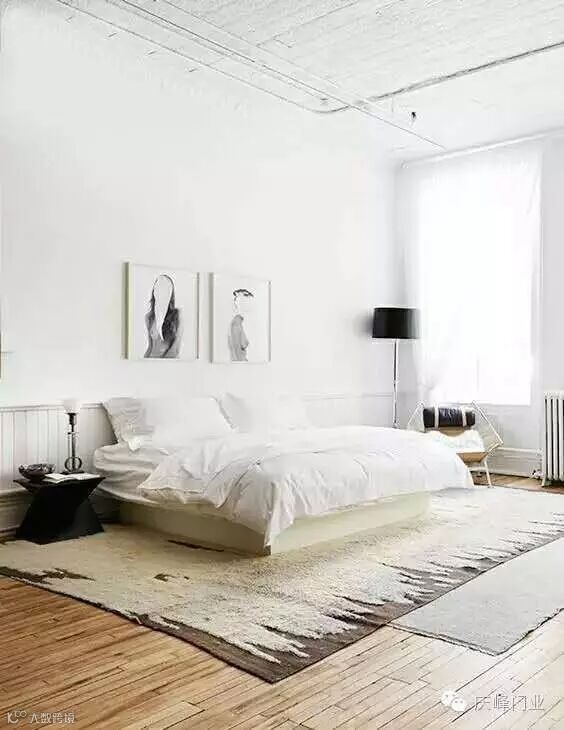 觉得房间小所以买刚好只覆盖床脚的地毯?那你可就错了,这样会显得房间更狭小臃肿;另外较浅的色调有助于视觉上扩大空间。