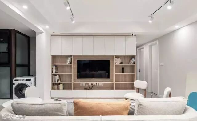 电视柜也可以做成顶天立地的设计,为家里添加更多储物空间