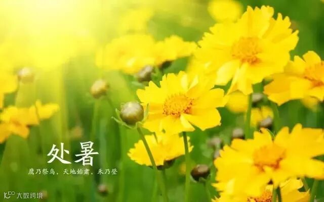 古人云:“处暑十八盆”,指处暑炎热,每天需一盆水洗澡,十八天节气变换后就好了。可见,此时还需谨防暑热,切不可对秋老虎掉以轻心。此外,处暑时节,阳光猛烈,紫外线容易灼伤皮肤,因此,外出还须做好防晒准备。