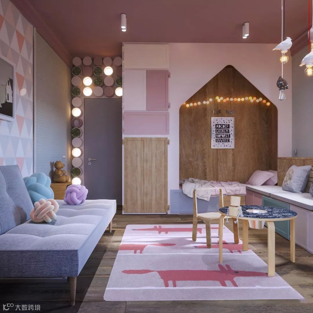从上面的两个表格可以看出,2-5岁的孩子在家里的主要活动是玩玩具,这个年纪的孩子有着满满的好奇心,对世界有勇敢的探索精神,我们可以为他/她布置一个儿童房如下: