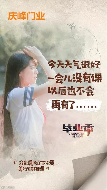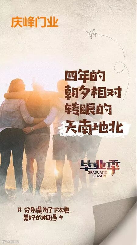 一开始青涩懵懂的我们,总以为毕业还很遥远,总以为时间还长,可是,真的毕业了,转眼身边的人都已各奔东西,才发现,原来一转身,便已是一段青春。毕业季,承载着太多的不舍,太多的留恋。毕业季,愿我们在彼此看不见的时光里,都能成为更好的自己。