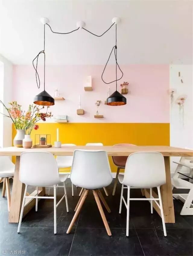 玫瑰色作为热门色不仅在家装上,连彩妆都常看到它的身影。玫瑰色非常的温柔,混合上述提到的灰色,你会拥有一个舒适又非常别致的家居空间。