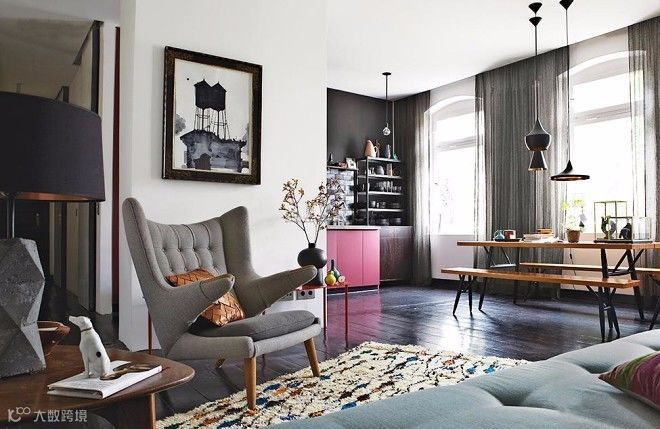 而深色地板,因为颜色比较深重而且占据面积比较大,跟浅色家具相对容易搭配。如果跟深色家具搭配的时候要格外注意,避免整体太过昏暗的感觉。可以适当用明亮的色彩点缀其间。