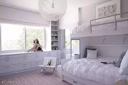 10、要适当留白,儿童房装修布置切记不要满满当当,墙面也要注意留白,儿童喜欢在墙面随意涂鸦,可以在活动区域挂一块白色的木板,让孩子有一处自由发挥的天地。