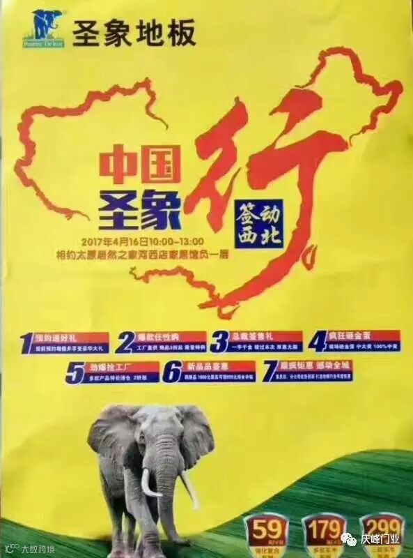 圣象地板4.16首场大型活动火热预约中!现金增值送好礼爆款3折起金蛋任性砸100%中奖强化59元,多层179元,三层299元,500家专卖店同时参与,打造年度钜惠,错过本次,厚惠无期!详情请店内咨询。好家居博览中心庆峰集成家居圣象专卖。4628999—4621966—13485499023