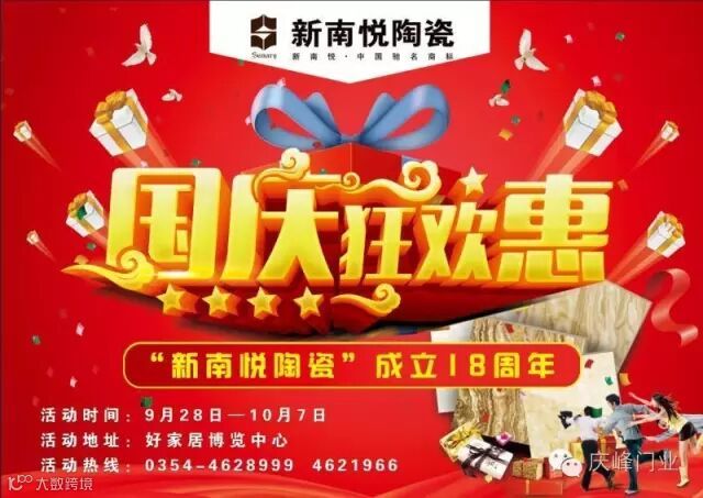 金秋十月,天蔚蓝,地碧绿,和风丽日;桂花飘香,丰收在旺;百鸟齐鸣,歌唱美丽的日子、锦绣家园。人们喜乐盈怀,张灯结彩,高挂喜庆的大红灯笼--欢度国庆,热烈庆祝祖国六十七岁生日诞辰。庆峰木门祝全国人民,国庆节快乐!!