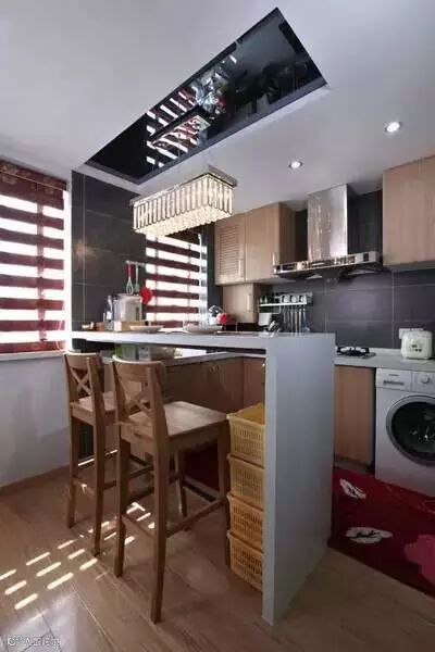 户型小,没有独立餐厅,在厨房有个吧台也能解决小两口的吃饭问题