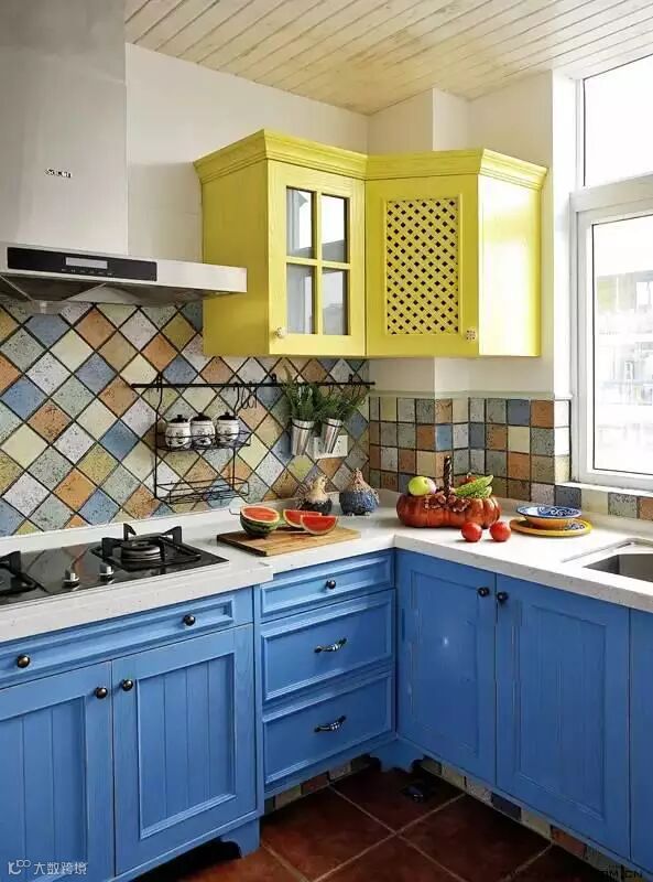 彩色斜铺的瓷砖能给厨房带来活跃的气氛