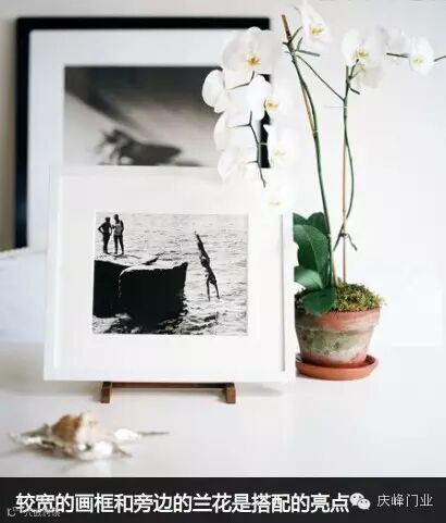 设计师建议如果选择了黑白摄影作品,那么搭配的色彩最好以黑、银、白框为主。复古的黑色和干净的白色让艺术感瞬间升级。