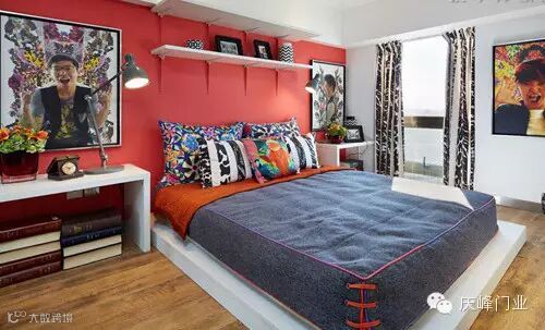 装饰tips:突破了传统的照片墙装饰,采用个性夸张的背景+真人的照片,自由随性的组合符合现代年轻人的装饰风格,搞怪的表情让家充满了趣味和激情!