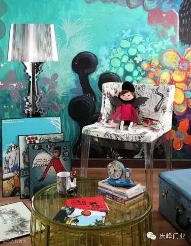 装饰tips:看惯了精致的工笔画,优美的风景画,曼妙的人物画之后,我们多少会有一些审美疲劳。除去常见管用的照片,画像,我们还可以用充满鬼才的艺术画装饰出不一样的风情。画面中鲜艳的色彩,没有常理可循的组合安排带给人们耳目一新的感觉。