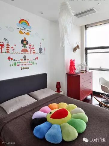 装饰tips:五彩的贴画是卧室墙面唯一的装饰,俏皮的色彩却点缀了童趣感十足的空间,令整个空间的美感度升级,个性而出挑。