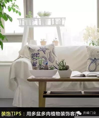 装饰TIPS:如果你是个盆栽控,用单盆的盆栽装饰客厅可能略显单薄,不如尝试一下造型多变的景观多肉。看上去既可爱又有趣。这样在夏日你也会因为这些可爱的绿色而心情愉快。