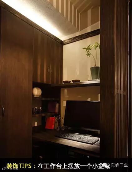 装饰TIPS:现代人在电脑上工作的时间越来越多,在工作台上摆放一个小盆栽,既能清新空气吸收辐射,也能让你在工作劳累之余眼睛可以得到休息。迎着阳光的小绿叶,让你夏日也不急躁。