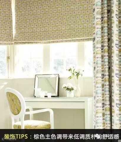 装饰TIPS:不透光的材质能更好地挡住强烈光线,棕色主色调带来低调质朴的舒适感。而卷帘的设计则使得窗户装饰更加的简洁,简洁从而带来夏季的清心感。