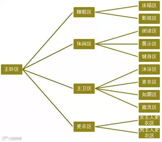 享受型卧室则是考虑:卧室空间尺度大;建筑层次的丰富,功能设备的齐全(包括睡眠区、休闲区、主卫区、更衣区)。