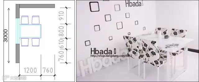 方形餐桌摆放8-10人空间,餐厅尺寸利用一般在3600mm*4800mm以上。餐桌长2000-2500mm,宽800-1200mm;座椅宽600mm,深450-600mm。