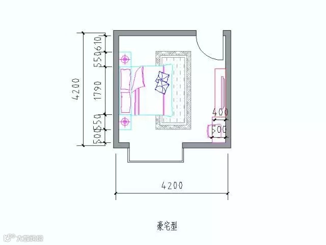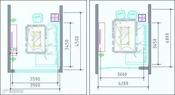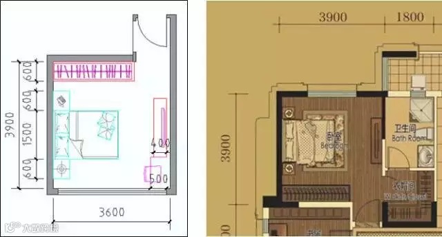 (2)净进深增加到3900mm以上,可设置梳妆台800-1200mm宽,人的活动空间加大。