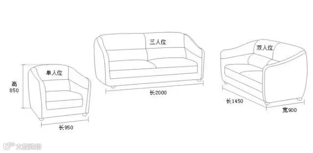三人沙发长度深度分别为1700~2400mm,800m-900mm;
