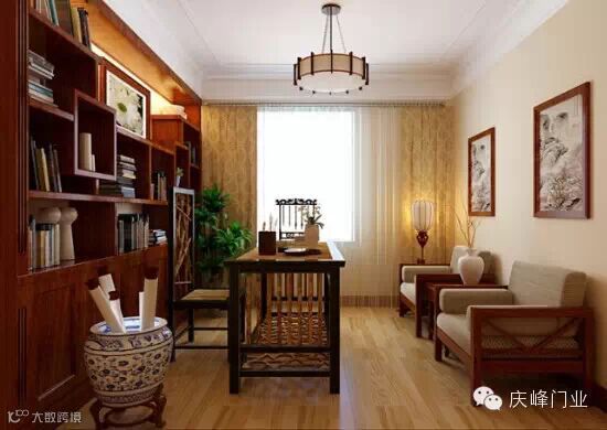 中式书房设计在视觉上给人古色古香之感,既有沉稳之感又有优雅不凡的内涵。摆放上文房四宝的必备物件,让房间充满体现出书香气息。